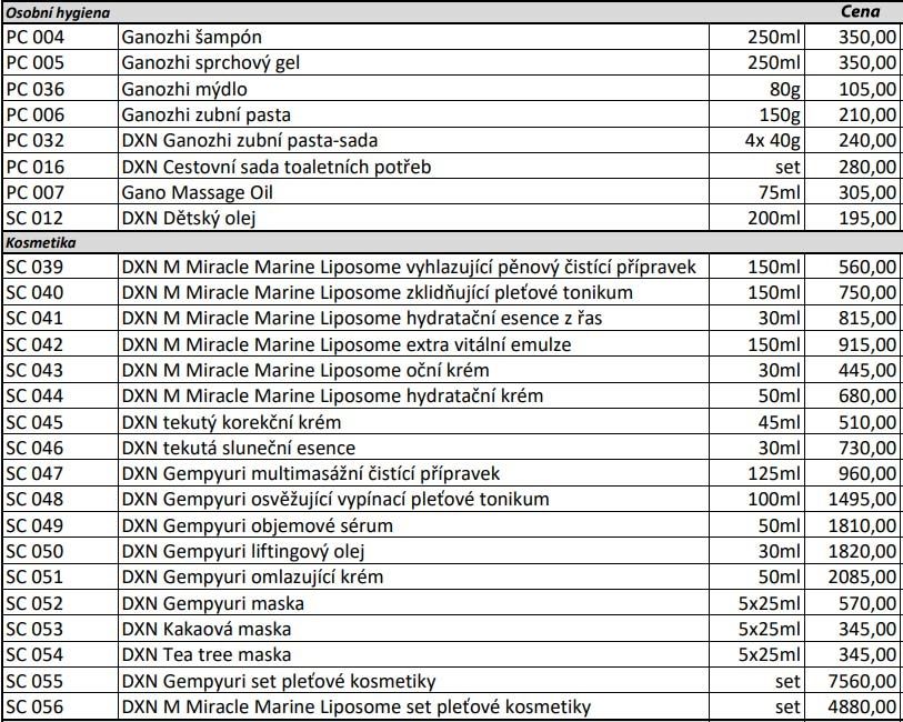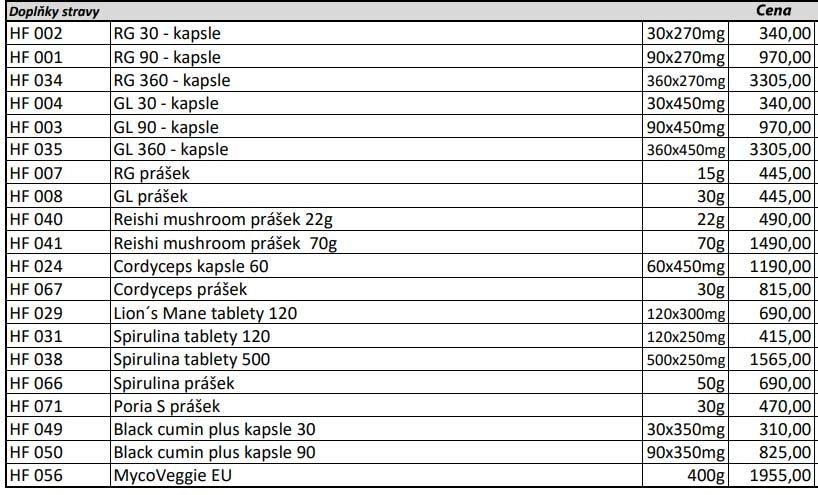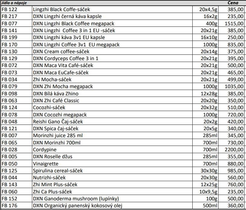 Vlevo vypište prosím kódy objednávaných produktů z prvního sloupce ceníku.
